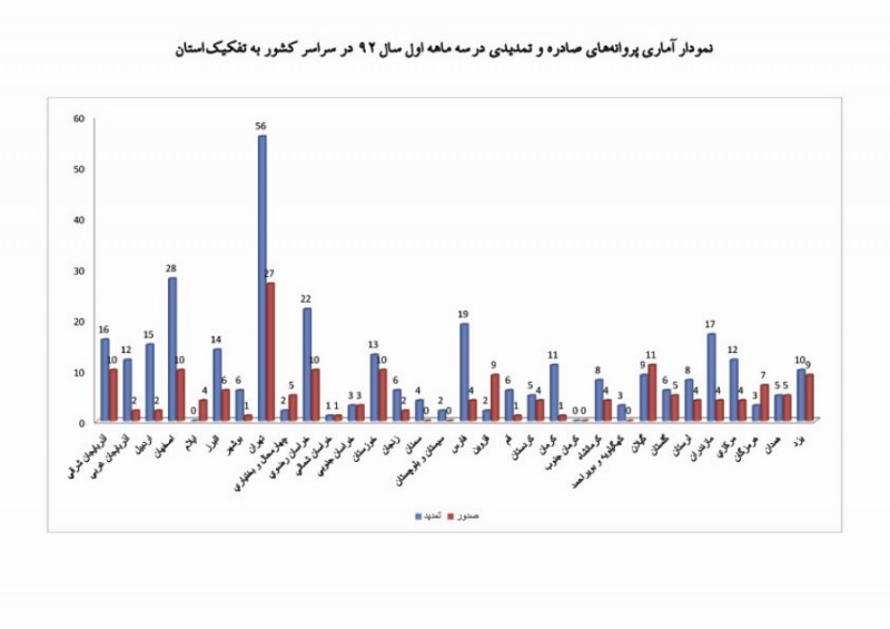 تازهترین نمودار فعالیت ادارات فرهنگ و ارشاد اسلامی استانهای سراسر کشور، از میزان صدور و تمدید مجوز کانونهای تبلیغاتی در سه ماه اول سال 92 در استانهای سراسر کشور خبر میدهد.
