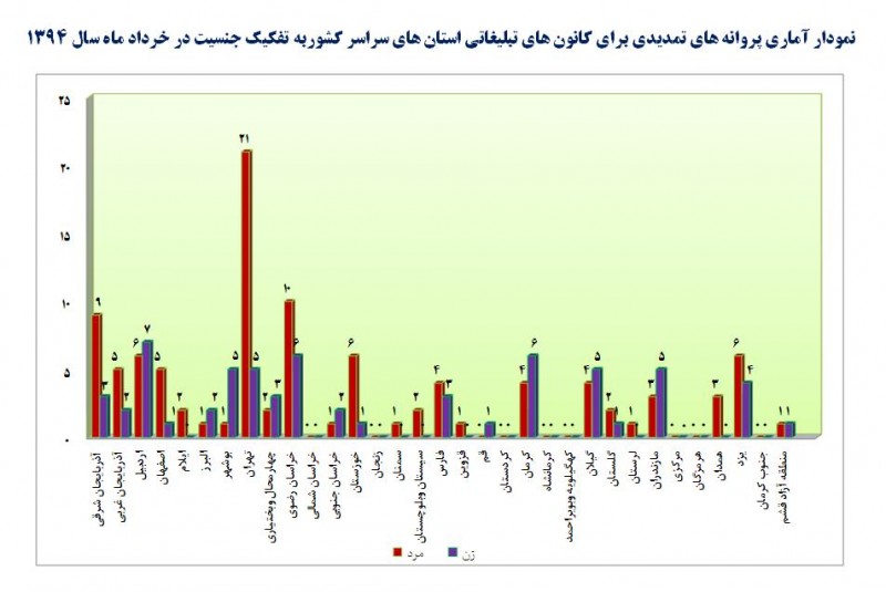 در خردادماه جاری، پروانه فعالیت 26 کانون آگهی و تبلیغاتی در استان تهران تمدید شده و با راهاندازی 13 کانون، بیشترین تعداد کانونهای تازهتأسیس در این استان به ثبت رسیده است. همچنین در استان خراسان رضوی که در رده دوم جدول آماری خردادماه قرار دارد، پروانه فعالیت 16کانون آگهی و تبلیغاتی تمدید و برای 8 کانونهای آگهی و تبلیغاتی جدید، مجوز صادر شده است.