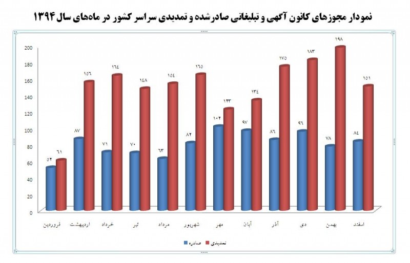سامانه سراسری تبلیغ در سال 1394، صدور و تمدید 2780 پروانه فعالیت کانون آگهی و تبلیغاتی را در سراسر کشور به ثبت رساند.