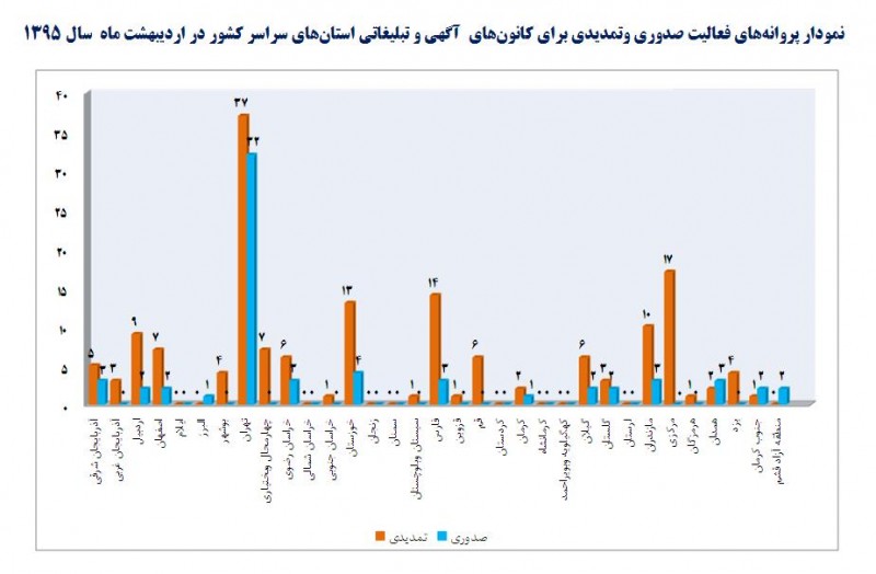 دفتر تبلیغات و اطلاعرسانی در اردیبهشت ماه سال جاری با تمدید 111 پروانه فعالیت کانون آگهی و تبلیغاتی و صدور مجوز برای 65 کانون تازهتأسیس موافقت کرد.
