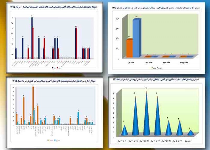 بر اساس گزارش تیرماه دفتر تبلیغات و اطلاعرسانی، این دفتر در ماه گذشته، با تأسیس 34 کانون آگهی و تبلیغاتی و تمدید پروانه فعالیت 74 کانون موافقت کرد که طبق این گزارش آماری، صاحبامتیاز 13 کانون تازهتأسیس زن و 21 صاحب امتیاز دیگر مرد بودهاند و از میان آنان، 2 نفر 20 تا 24 سال، 8 نفر 25 تا 30 سال، 9 نفر 31 تا 35 سال، 8 نفر 36 تا 40 سال، 3 نفر 41 تا 45 سال، یک نفر 46 تا 50 سال و 2 نفر بالای 50 سال سن داشتهاند.