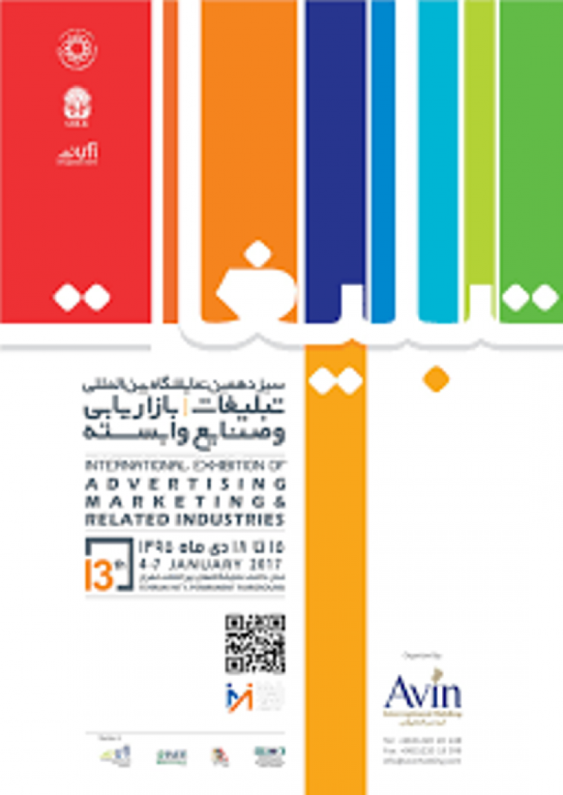 سیزدهمین نمایشگاه بین المللی تبلیغات، بازاریابی و صنایع وابسته توسط شرکت تبلیغاتی آوین افراز، با حمایت اداره کل تبلیغات و اطلاع رسانی و با هدف آشنایی با تکنیک های بازاریابی و پیشبرد فروش ، برقراری ارتباطی نزدیک بین ارائه کنندگان و متقاضیان خدمات، تجهیزات و ماشین آلات صنعت تبلیغات و بازاریابی ، انتقال دانش فنی نوین و کارآمد در راستای رشد کیفی و کمی محصولات داخلی و توسعه صادارت غیر نفتی، با حضور شرکت کنندگانی از کشورهای ایران ، ترکیه، ژاپن، چین، کره جنوبی، ایتالیا، آلمان در روزهای 15 الی 18 دیماه در محل دائمی نمایشگاه بین المللی تهران برگزار می شود.