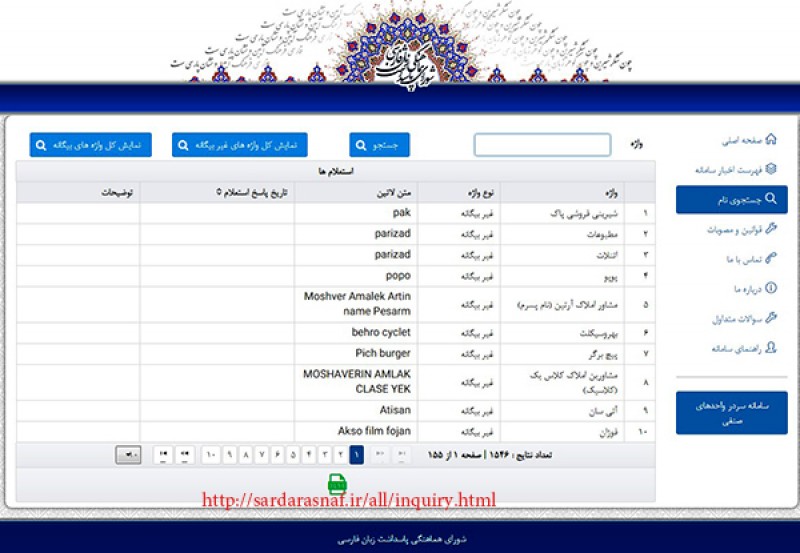 به گزارش دبیرخانه شورای پاسداشت زبان فارسی، امکان جستجوی واژه جهت دریافت تاییدیه طرح تابلو واحدهای صنفی از طریق نشانی الکترونیکی http://sardarasnaf.ir/all/inquiry.html فراهم شده است.