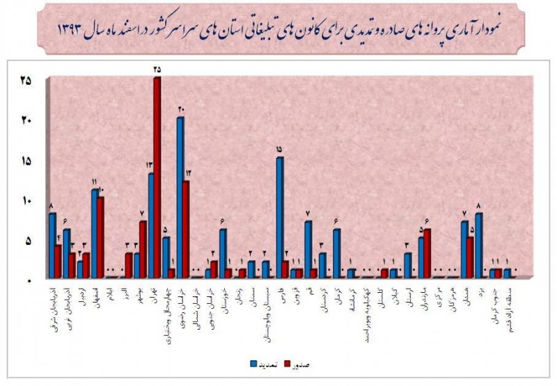 صدور و تمدید 227 پروانه فعالیت کانون آگهی و تبلیغاتی در آخرین ماه سال 1393